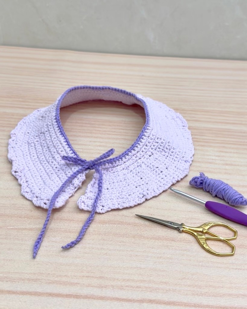 The collar was not attached to any buttons or straps, so I told my student that I’ll add some final touches to make it detachable. Since I couldn’t find any yarn in the exact color from my stash, I chose a darker color and added a row of single crochet with matched tension. I tried to avoid doing too much in order to keep the authenticity of the original design, and it turned out perfectly! This collar will forever be a precious keepsake since it contains so much memories! It’s definitely one of the most heartwarming gifts I’ve ever received : )